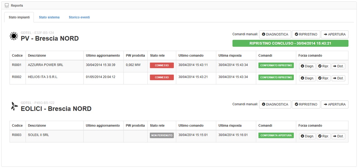 Definiti i gruppi e gli impianti, il sistema rende disponibile in maniera automatica una semplice tabella di riepilogo che potremo inviare a Terna con le informazioni relative alla potenza dichiarata distaccabile per singolo impianto e per singolo gruppo.